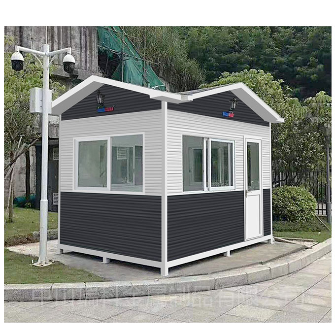 關于不同分類的崗亭的功用 1、活動崗亭。 活動崗亭是一種以輕鋼為骨架,以夾芯板為圍護材料,以標準模數系列進行空間合,構件采用螺栓連接,全新概念的環保經濟型活動崗